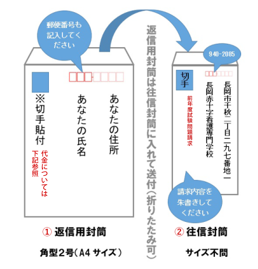 前年度試験問題を郵送にて取り寄せる場合