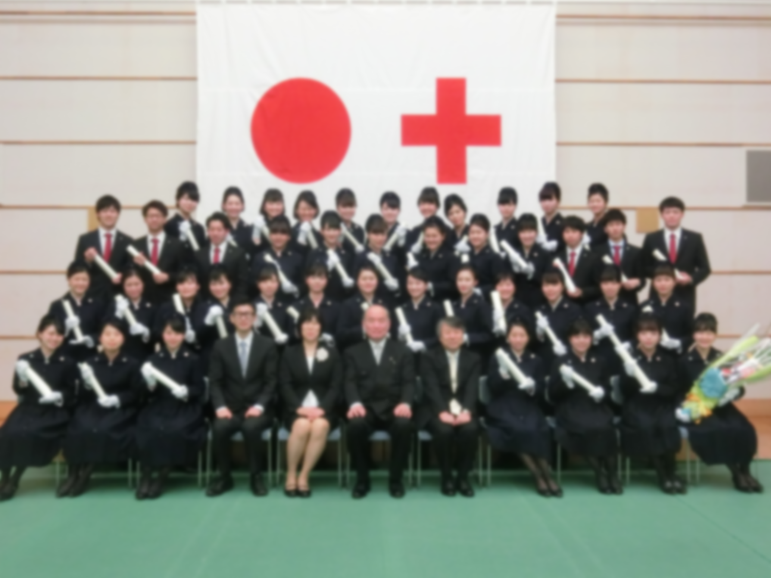 2018年03月23日 平成29年度卒業式を挙行しました 3月16日(金)、長岡赤十字病院講堂に於いて第66回生 計43名の卒業式が行われました。卒業生は女子は赤十字救護員制服で、男子はスーツで式に臨み、厳粛な雰囲気のなか卒業証書を授与されました。式終了後は、ご家族や在校生から祝福され、最高の笑顔を見せていました。 春からは長岡赤十字病院をはじめ各地の赤十字病院・県内外病院等に就職し、看護師として歩みはじめます。卒業おめでとうございます。