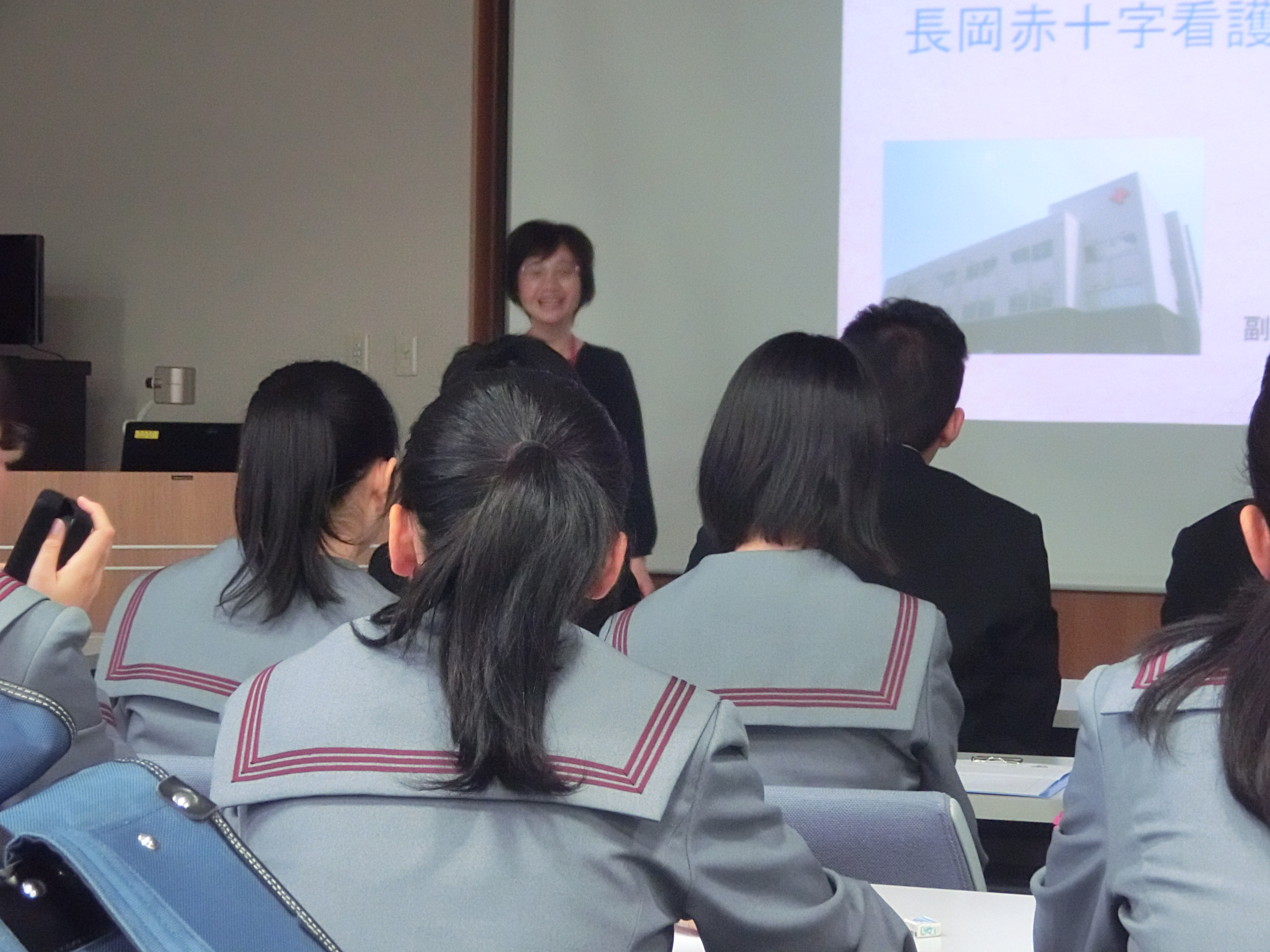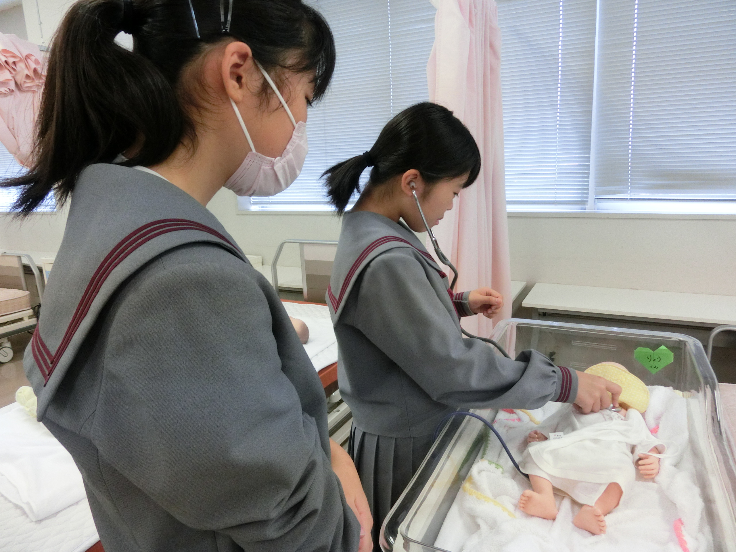 2018年10月29日 中学生の上級学校訪問を受け入れました 10月24日(水)に中之島中学校3年生43名、大島中学校3年生13名が上級学校訪問のために来校してくださいました。 看護、当校の特色、赤十字について説明した後に校内を見学。実習室ではモデル人形や医療器具に触れ、少し体験していただきました。 今回の訪問が、これからの進路や職業選択にお役に立てれば幸いです。